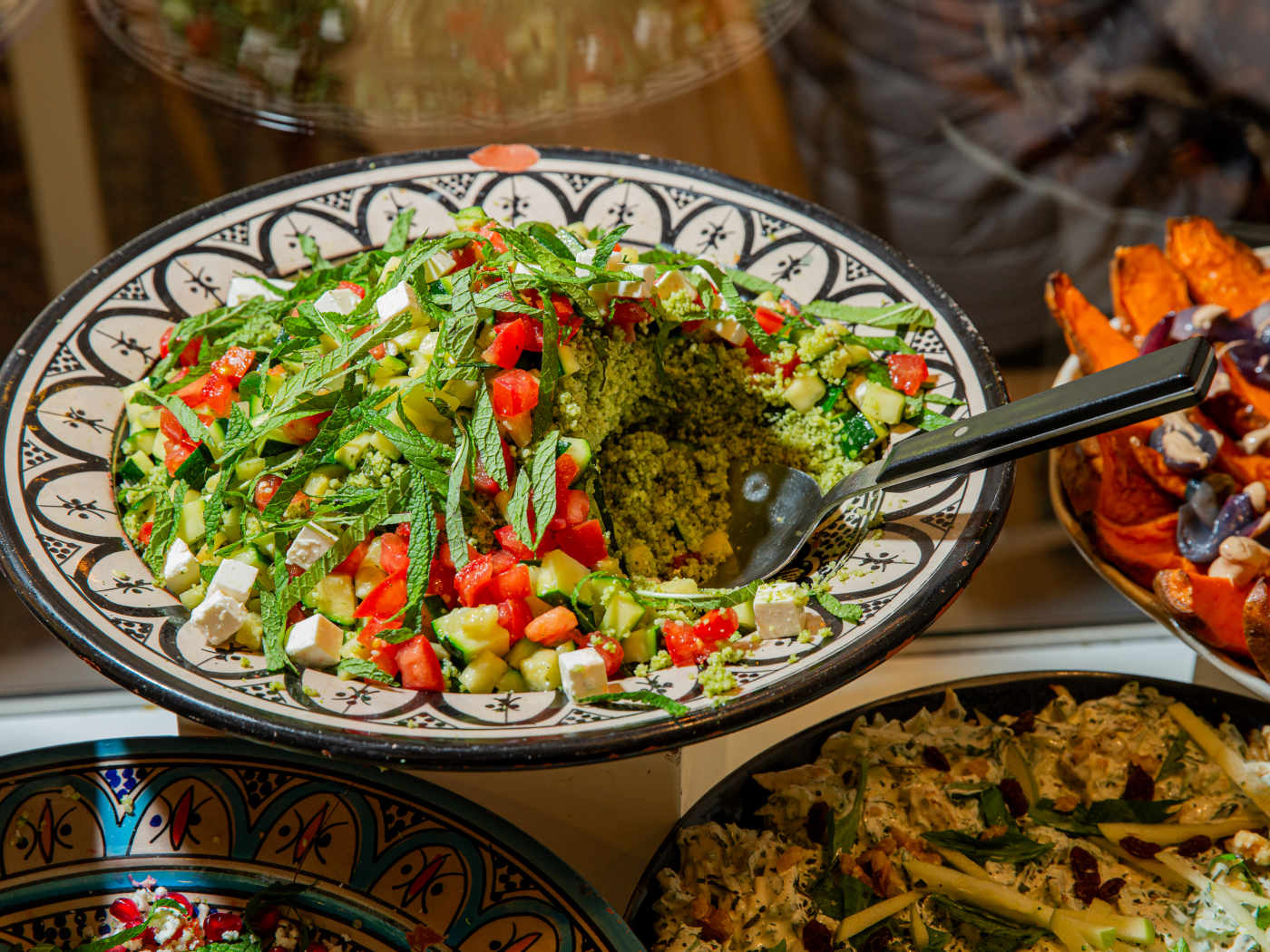 You can’t go wrong with whatever you get, but our favorites are the sweet and savory rice with saffron, lentils, raisins, mini-meatballs, dates, and fried onion, the tortilla de patata, which Banibanoo infuses with chicken and tops with sour yogurt, and the sweet potatoes and pomegranate. Reserve on weekends or Fridays when the lunch hour gets busy, but most days you can pop in without a booking to enjoy a quick, healthy midday meal with friends or on your own.
