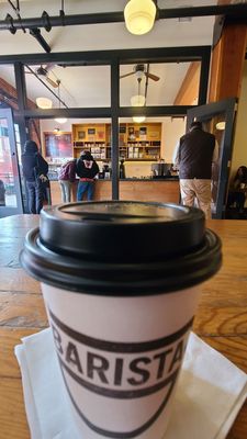 I used to not like them because their menu is intimidating (no flavors, no fun drinks, no color, talking about beans) and the people can come across as cold at some locations, sometimes. But now I feel like we're simpatico and if I describe what I want, they honor my $6 drink and make it right. So I guess I've really come around on ole Barista. This is my favorite location and when I go on the weekends, I always see dogs, I usually like the music and they have let me bring a personal cup which is nice for zero-waste.