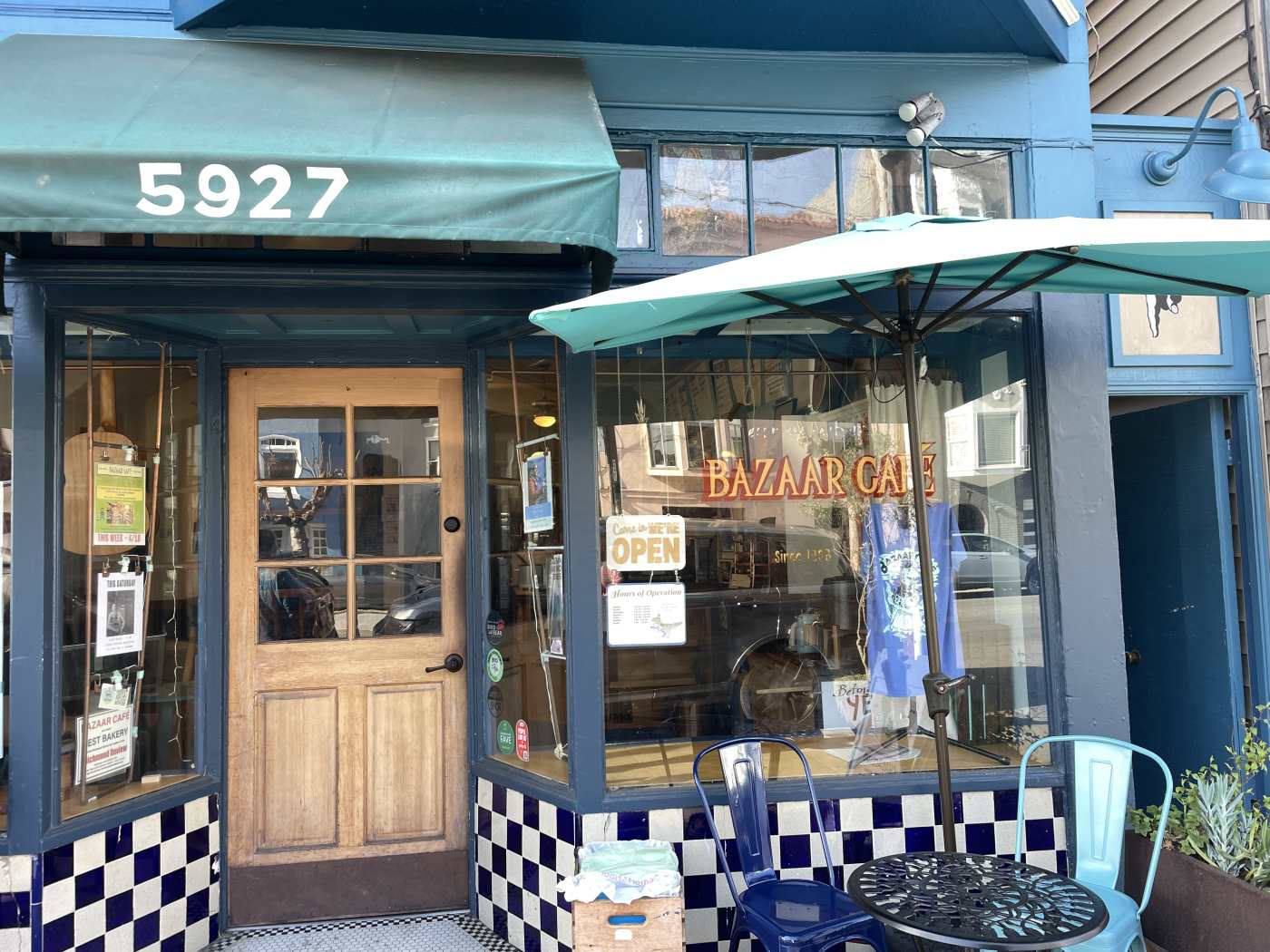 Jamie W. took me for a drive for a change, and we ended up at Land's End where we strolled above the baths and around the bend to the vista point for the Golden Gate. You know the drill. Anyway, I bookmarked a tea spot that sounded interesting, Tal-Y-Tara Tea & Polo Shoppe, which apparently is half tea parlor, half equestrian equipment shop. Seriously. We walked up to it to find it closed for renovations. Damn. Well, Jamie needed to run some errands, so I decided to take a stroll down California Street in the Avenues by myself, something I had not done since I was knee-high to a man, yeah. Gave me a piece of mind my daddy never had.