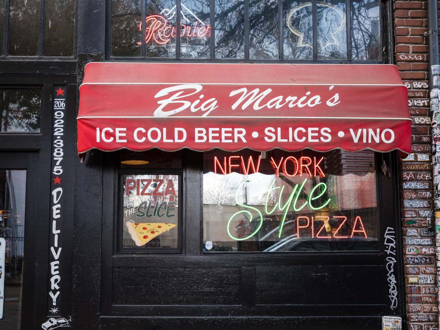 "Opened in 2010 on Capitol Hill by Velloti, Lajeunesse, and others, the original Big Mario’s was the rare place in Seattle that served New York–style slices and stayed open late; that successful formula has since expanded into five locations." - Harry Cheadle