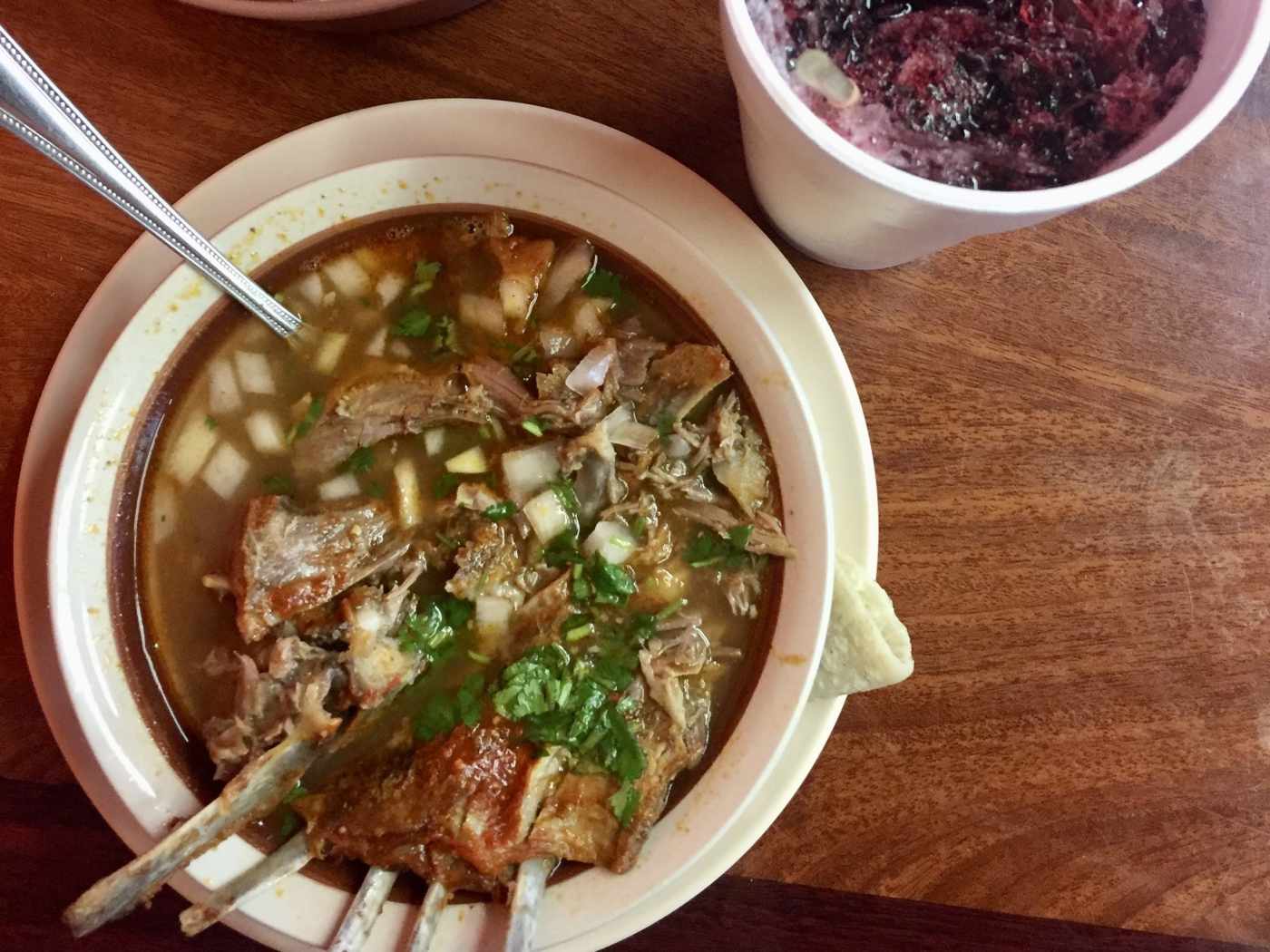 "Jalisco is the gold standard when it comes to goat birria, followed by respected traditions in Aguascalientes and Zacatecas, especially Nochistlán de Mejia, Zacatecas, just three miles from the Jalisco state line, where the Moreno family originates. Their Boyle Heights outpost serves an austere rendition of braised goat in stock made from the drippings with only a hot chile de árbol salsa, chopped onions, and cilantro as condiments." - Bill Esparza