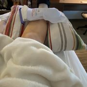 The crispy, but not too crispy waffle alone engulfed the plate and was liberally doused with crumbly peach cobbler and chunks of peppery chicken tenders. When I grabbed the bottle of syrup, other patrons at the restaurant gasped. Apparently, this dish is sacred and doesn't need syrup. Actually, it doesn't need anything--other than for you to unhinge your jaw.