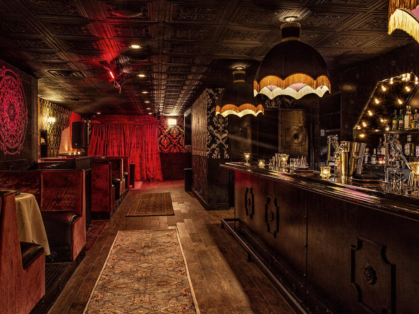 "Bordel is from the same people who own Beatnik, and this cocktail bar has an equally over-the-top atmosphere. It’s a cross between a speakeasy and a bordello, so you can expect a hidden entrance, a DJ, a lot of dark velvet, and whirling tassels. Food options are somewhat limited to shareable plates like croquetas, charred octopus, or tuna tartare (all supplied from downstairs neighbor Mama Delia). But that’s fine because you’re mostly coming here for drinks and to catch a performance—depending on the night, you may see flamenco dancing, sword swallowing, a burlesque show, a magic act, or some combination of them all." - adrian kane