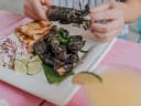 "Botiwalla is a fast-casual Indian street food stall from the popular Chai Pani team. But just one meal here brings this Ponce City Market spot out of the shadow of its sister restaurant and into its own spotlight as a must-visit. Perfectly puffed sev potato dahi puris pair well with any of the sandwiches like the very good chicken tikka roll, served with a fresh slaw in a buttery naan. The layers of flavors in every dish feel fine-tuned, like when the buns on the cumin lamb sliders are brushed with ghee before being slightly toasted. There’s nothing on this menu that’s skippable. Nothing. So you might as well invite along the crispy, dry-rubbed wings to your order, too. Come through when you want something quick but filling for lunch or dinner without sacrificing on taste. Food Rundown Masala Smashed Potatoes These crispy fingerling potatoes are tossed with salt and lime juice, and come out a little smashed. Dipping them in the sweet and spicy ketchup gives them an extra boost of flavor that helps start your meal off on the right foot. MG Road Wings You get six dry-rubbed wings per order. They’re super crispy and taste best dipped in their creamy, mildly spicy desi ranch. These make for a nice appetizer. SDP - Potato Dahi Puris These don't travel well, so only order them if you're eating inside. Six of the perfectly puffed puris sit on a plate. One bite of these explodes with a burst of yogurt, sweet chutneys, and chunks of potatoes. Botiwalla Lamb Burgers These two mini sliders pack a flavorful punch. The thin lamb patties have all kinds of seasoning—cumin, chillies, and cilantro. They’re topped with a cabbage mix, green chutney, and ketchup that combine to make the sliders taste light and fresh. You have to order this. Chicken Tikka Roll Their chicken tikka is good enough to eat on its own. But we like it even better when it’s wrapped in a buttery naan and mixed with a creamy cabbage slaw that has a hint of cumin." - Juli Horsford