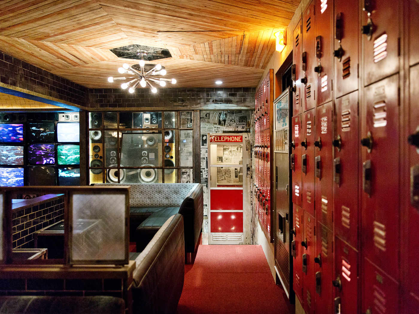 80s-themed speakeasy with karaoke, dancers, and arcade games