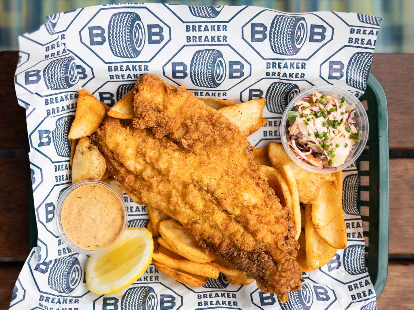 "Backed by the team behind Grindhouse Killer Burgers, think of Breaker Breaker as an Eastside trail respite, where people roll up for a blackened grouper sandwich or fried fish basket paired with a frozen drink or spritzy cocktail. Chef Maximilian Hines, founder of supper club Stolen Goods, leads the kitchen and carries the coastal theme throughout the menu. Look for everything from Gulf fish ceviche and smoked fish dish to a smoked fish melt and vegan crab cakes. The latter is one of Hines’s signature dishes (a previous iteration was vegan fried calamari). The vegan crab cakes are made with mushrooms, hearts of palm, and a vegan remoulade. Head upstairs for a vibey coastal bar, Floridaman." - Molly Harris
