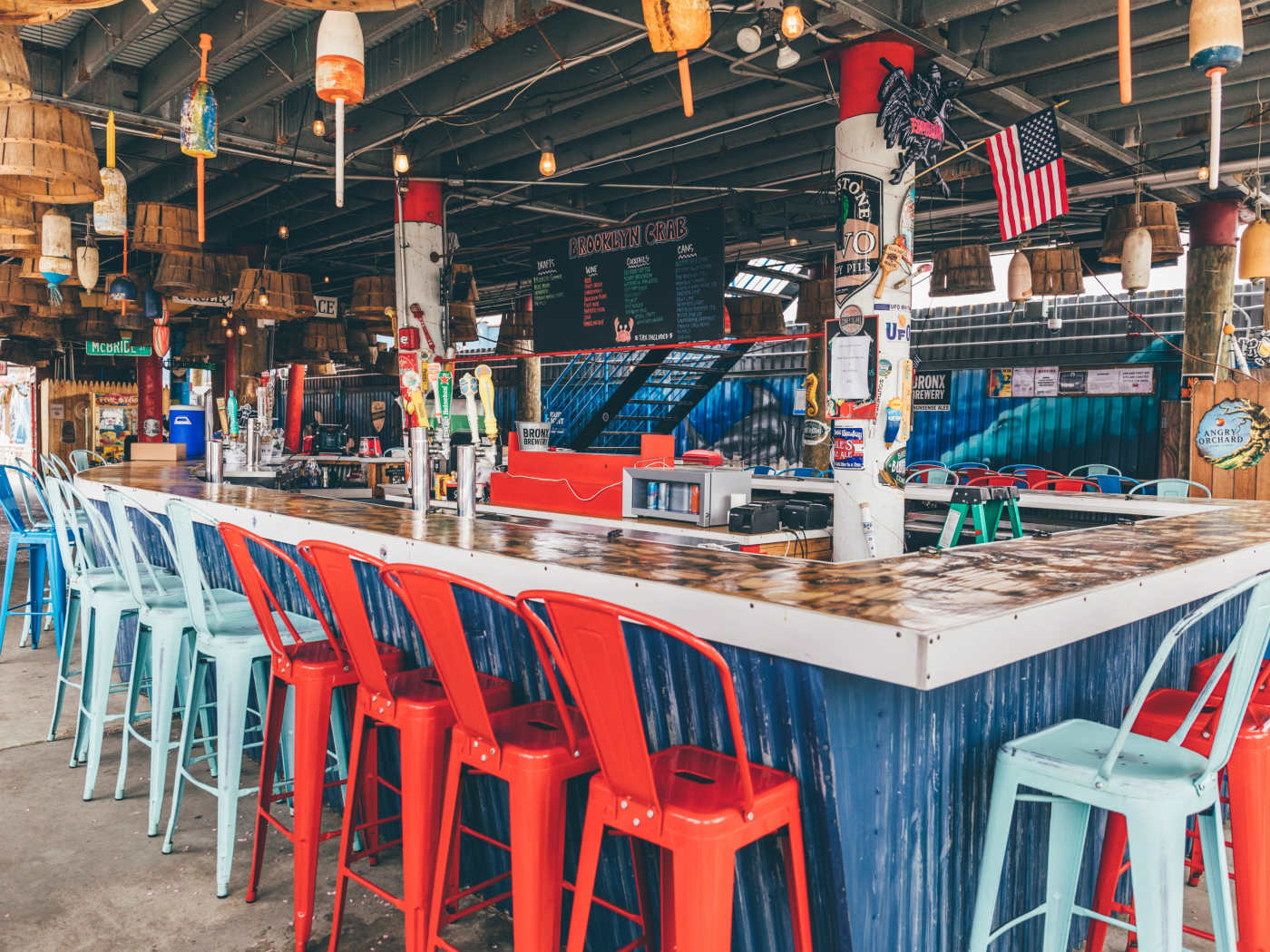 "If you really want to put yourself in vacation mode, go to Brooklyn Crab. It’s a three-floor seafood spot in Red Hook that feels like a place you’d find by the beach. Along with crab traps and fake sharks decorating the airy space overlooking the water, there’s cornhole out front and mini-golf in the backyard. When the whiskey-gingers start going to your head, get a table, put on a bib, and eat steam pots of crab with corn on the cob." - bryan kim, matt tervooren