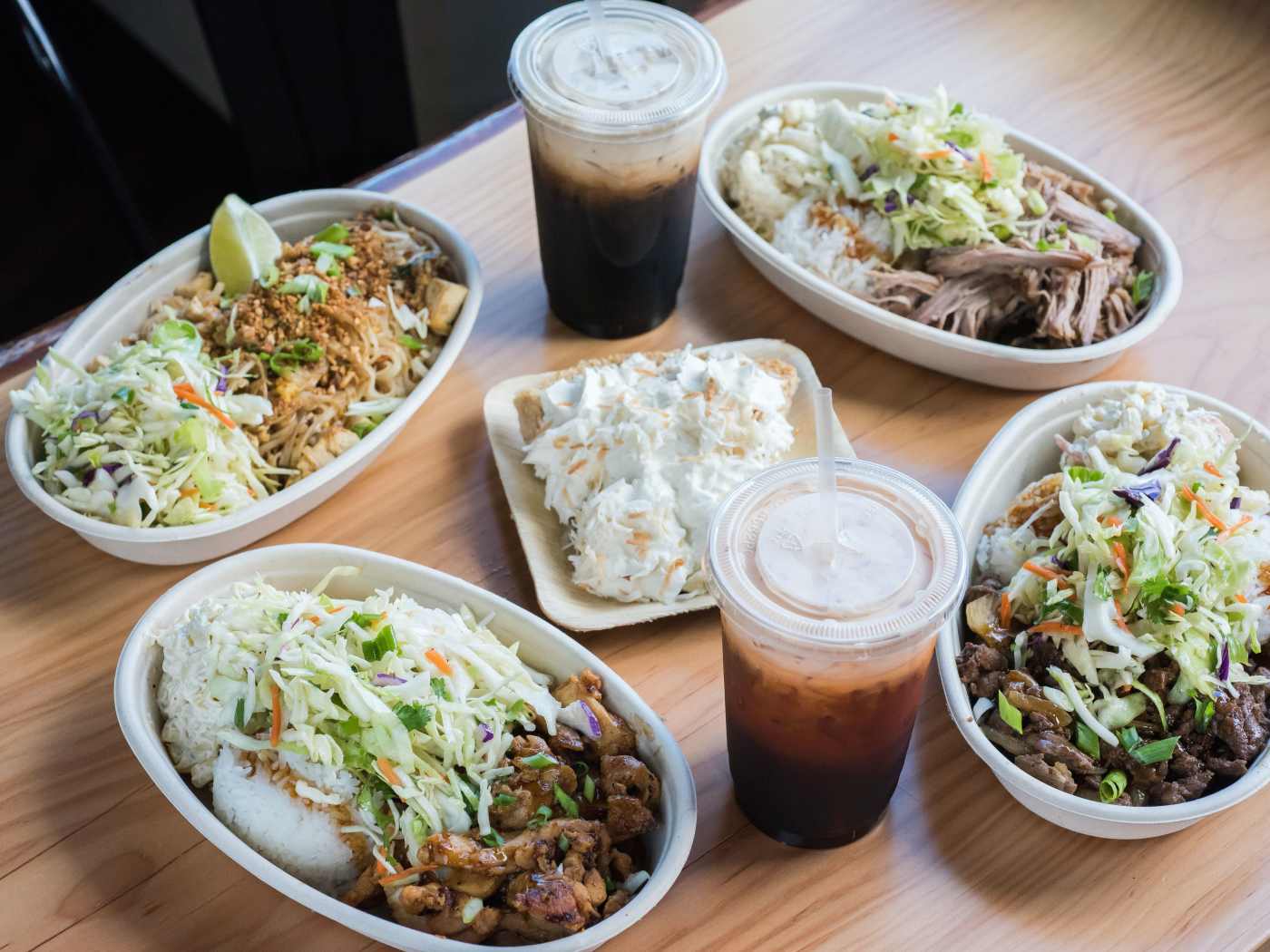 "Eating a Hawaiian plate lunch and drinking creamy Thai iced tea with some friends at Buddha Bruddah makes a weeknight feel undeniably less like a weeknight. Plus, the staff is super friendly, there’s a DIY hot sauce bar, and you can order an entire coconut cream pie. The best thing to do, especially with a group, is to get a bunch of things - like charred huli huli ginger chicken, garlicky shrimp, spicy pork, pad thai, and, yes, pie - and split them." - aimee rizzo