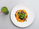 Scrambled Eggs On Sourdough Toast With Garlic Butter Portobello Mushrooms