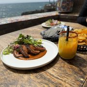 Bullpen is located off of Clairemont Mesa Blvd heading west off of the 163 or east off of the 805 freeways. The sports bar is located in an outdoor strip mall where Daiso, Turner Outdoorsman, Menya Ultra, and Cheetah's are located. There are plenty of parking spots in this strip mall, but it can get crowded due to the popular eateries and shops in this center. For this UFC event here at Bullpen, there was a $10 cover charge. As I was about to walk inside the restaurant, this tatted, athletic, and Caucasian bouncer blocked me from entering by touching me saying that there was a cover. Note to management, you probably should remind this bouncer that he shouldn't be putting hands on people because some patrons might not take too kindly to his actions. After paying the cover, I entered Bullpen and sat down at a table where I had the best view of the UFC fight that was going on and could clearly hear the sound. There is plenty of seating and there are an avalanche of televisions where you can watch UFC and a bunch of other sports. Our waitress, who was also from Australia, provided quality customer service and was friendly. I didn't think she checked on us as much as I would have liked.