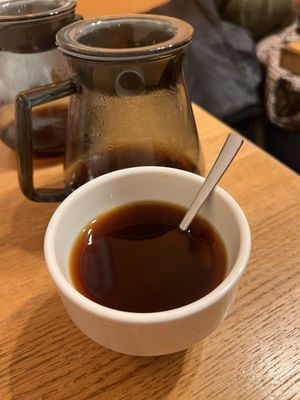 Well worth it! Coffee, iced tea, juice and coffee drinks. High quality food. The homemade granola has a nice mix of dried fruit and nuts. The peanuts really elevate the flavor. The granola was atop my yogurt which was also delicious. Le Continental comes with baguette, ham, cheese and egg. Le Granola comes with baguette, butter, jam, apple juice, homemade granola/yogurt and one hot drink. The cappuccino is spot on! The baguette was soft yet sturdy, probably the best I've had thus far. $40 US dollars for 4 adults. Small entrance but has 3 levels of dining space. Bathroom at the top level not suitable for older people as door opens to the steep and narrow staircase. Three bistro tables outside (2 chairs each) in July. Bon appetit!