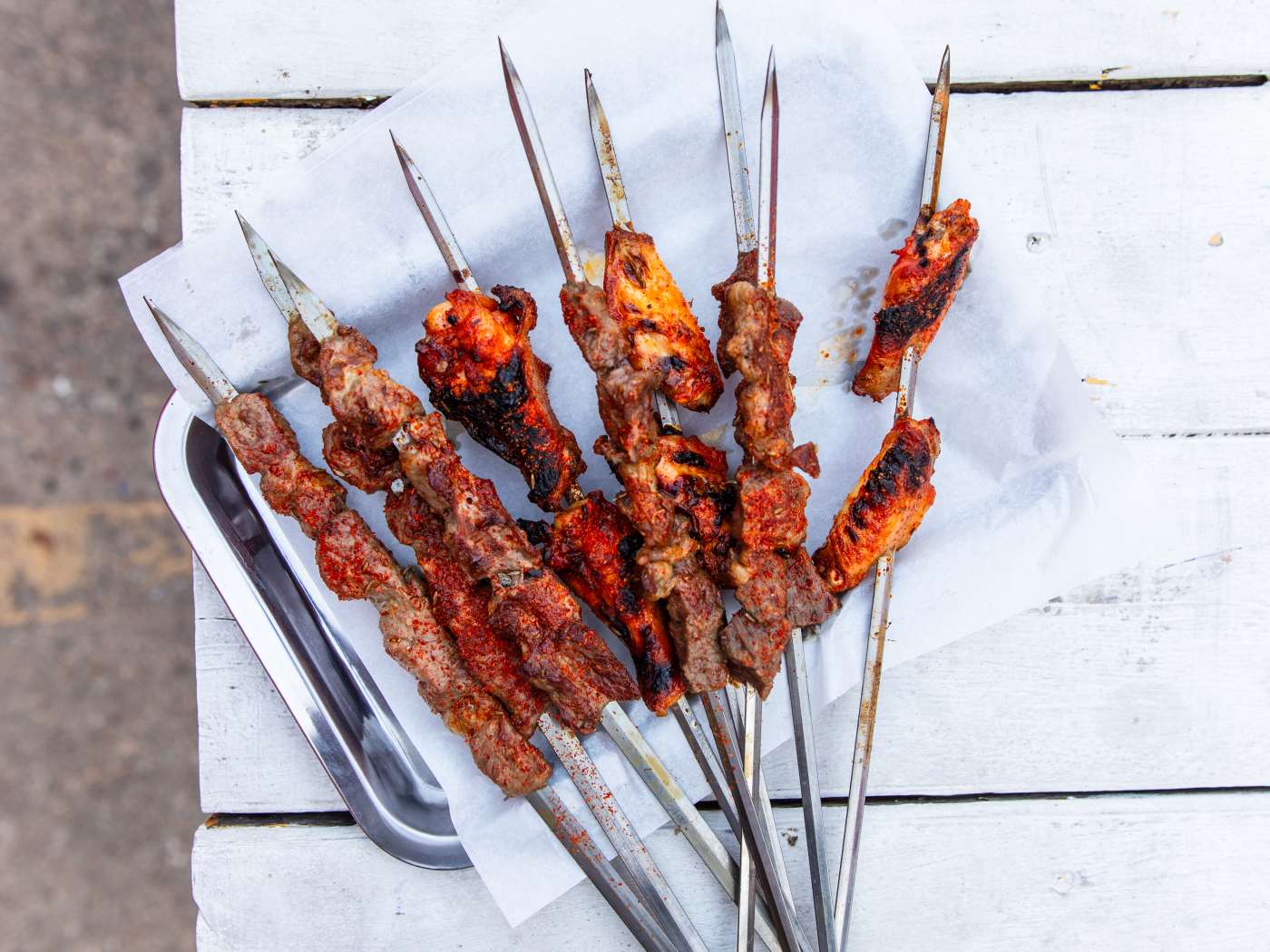 I ordered 3 lamb and 3 beef skewers and they were all delicious. $9.99 for 1 portion of skewers, which is 3 skewers. You can also order them individually per skewer as well. Occasionally there will be a piece of fat on the lamb or beef and it's so tasty, such a great flavor, and you can tell it's high quality meat. I ordered them "hot" and the spice/seasoning doesn't overpower the flavor of the meat at all, but I could still feel the heat on my lips and mouth just a little bit, it was a very good experience. The man working there also gave me a free piece of sweet bread along with my skewers.