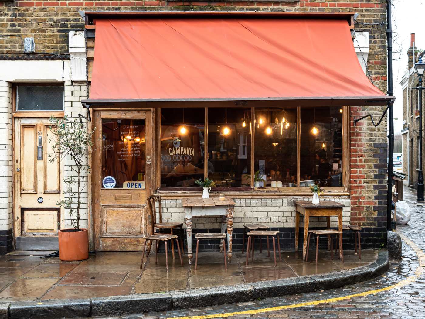 "Campania has the most romantic outside seating in London. Its handful of alfresco tables are on a cobbled street off Columbia Road, candlelit come evening, and (preferably) piled with risotto and pappardelle. The pavement seats at this Italian restaurant fill up quickly all year-round—so book ahead." - heidi lauth beasley, jake missing, rianne shlebak, sinead cranna