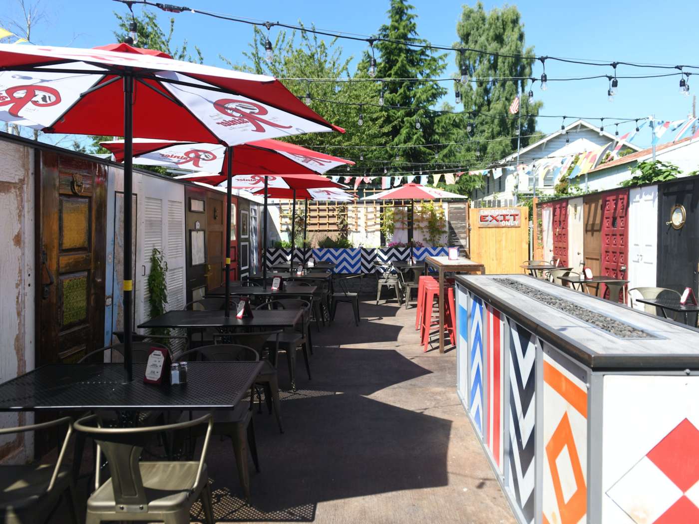 "This White Center pub is good for a calm meal outside with groups that include Frenchies and Labs. You can order crunchy fish and chips with roasted jalapeño tartare while your pup gets all the pets. Their patio has a bunch of spaced-out tables, a firepit, string lights, and our favorite piece of patio decor in Seattle—walls made out of different types of doors." - aimee rizzo, gabe guarente