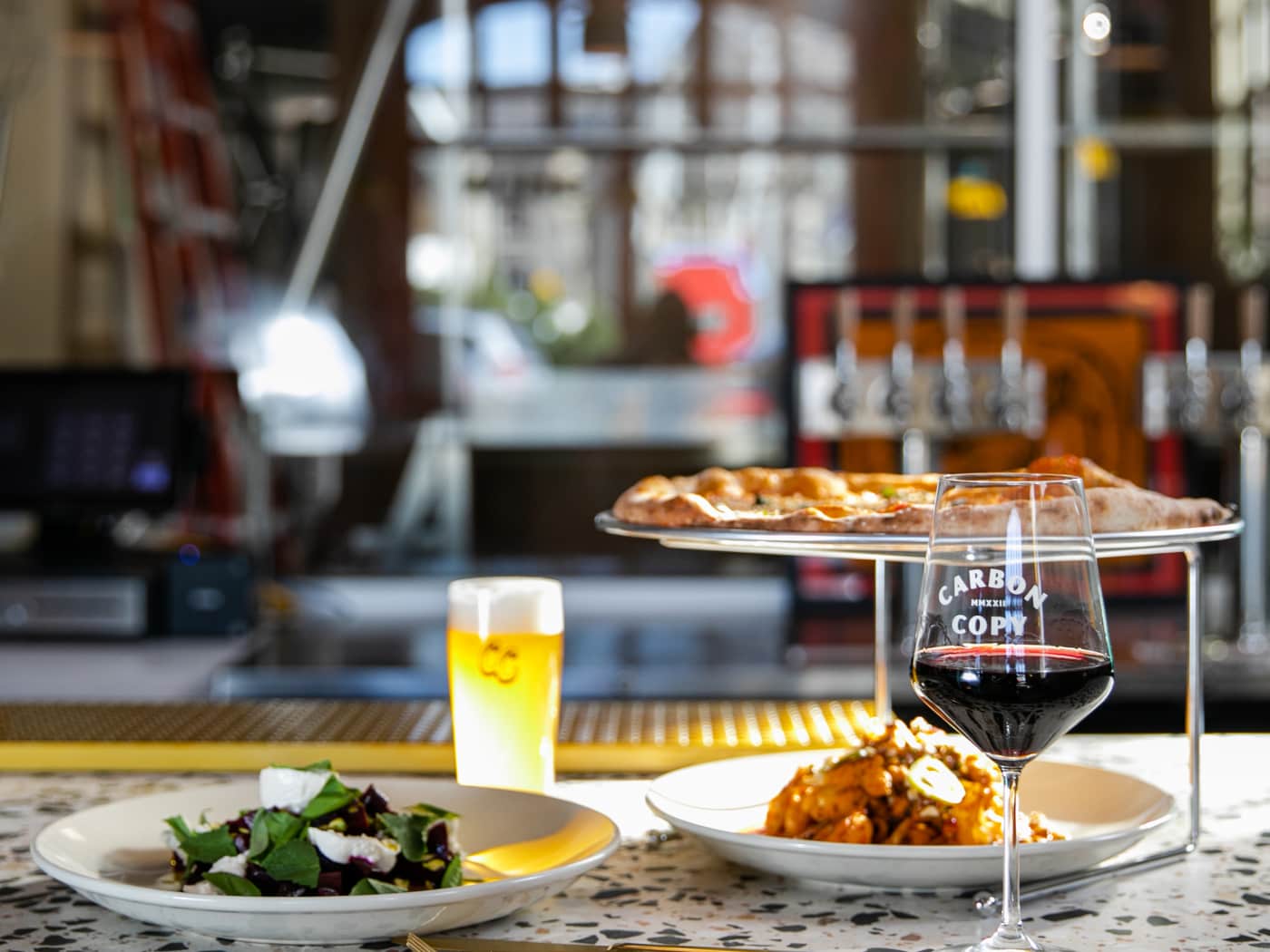 Ambiance: Walking in, there is a lively vibe with more straightforward and simpler, modern decorations blending a pizzeria/brewery environment. You can see parts of the brewery equipment through giant windows behind long counter, and it has an overall laid-back atmosphere.