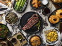 "A menu curated by Daniel Ontiveros, whose portfolio includes restaurants of chef royalty like Joel Robuchon and Thomas Keller, means that the tomahawk is as intentional as the restaurant itself. At Carversteak, the 50-ounce tomahawk rings in at $315 and can be enjoyed with high-end seafood accoutrements like Baby Tristan lobster tail and Alaskan king crab Oscar. Start the evening at the 70-foot quartzite stone bar before sitting down for a steak to make a night out of it." - Jennifer Smith