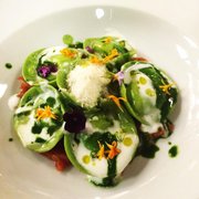 My main course and desert unfortunately I wasn't as impressed with. The risotto was delicious tasting: acquerello carnaroli aged rice, artichoke purée, smoked eel. It was creamy and rich and decadent. The smoked eel was something I had never had before but was an interesting savory twist. Though, I even asked someone else that had ordered the risotto if something tasted off and he agreed. The rice was slightly chewy and tasted as if it had been sitting too long or was re-heated. Also, usually you find risotto in an indented dish or bowl and not on a big wide plate. I can't imagine it wasn't cooked from fresh since the restaurant knew 20 people were coming in to try items from their weekend menu. Though, I did enjoy the garlic crisp chips resting in the middle of the risotto and understand it is a hard dish to master perfectly. Other peoples' dishes though looked and I'm sure tasted beautiful though: the scottish salmon nestled in a bath of white asparagus puree, the cappellacci covered with liquid mozzarella, roasted green circle chicken.