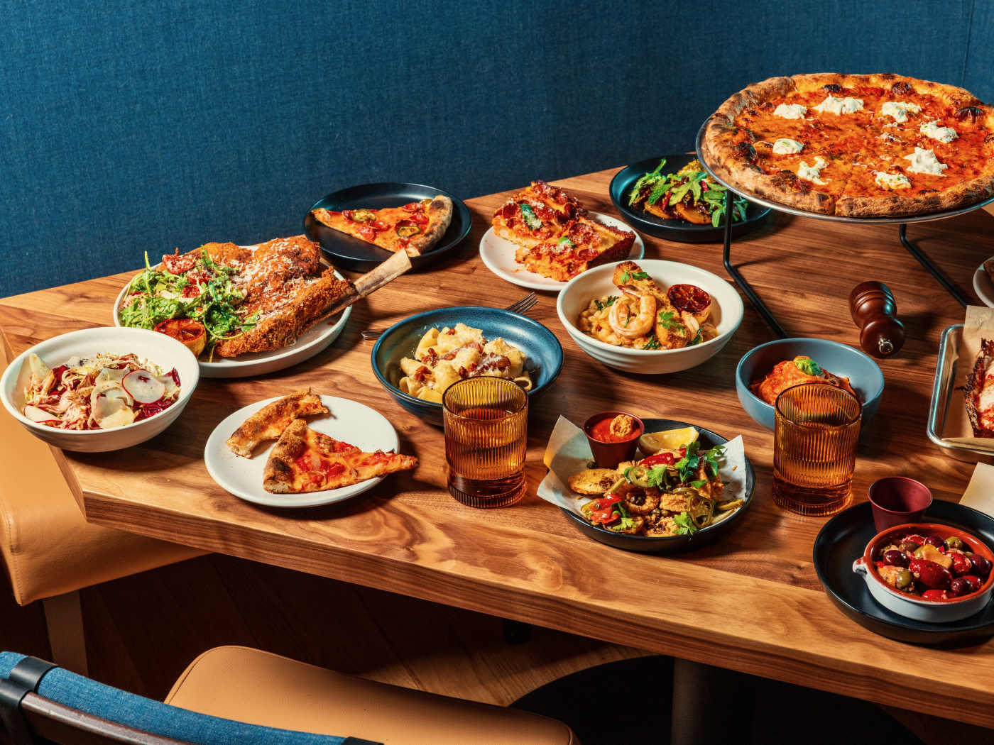 My family and I stopped in here tonight while on vacation in NYC. My son and I had the pizza, my daughter had the pasta carbonara, and my wife had the ravioli... the staff was friendly or courteous, the service was fast, and the place was clean. We started with calamari, with the jalapeños, some cappers, and red pepper, it had a very unique tasty spice to it... the pizza was fantastic, it was very tasty and light... had a great crust, no flop, not greasy... I'm a Chicago pizza guy by preference, so this sort of pizza isn't really up my alley typically, but it was so good!! My wife and daughter both really enjoyed their meals as well. Save a few slices of pizza we couldn't finish (I'd say the pizza would feed 3) there were no left overs. The portions were the perfect size.... My son already wants to go back tomorrow. This place was super tasty, and a few blocks outside of Times Square so it also avoids the crowds. I never leave reviews either but felt this place deserved one !