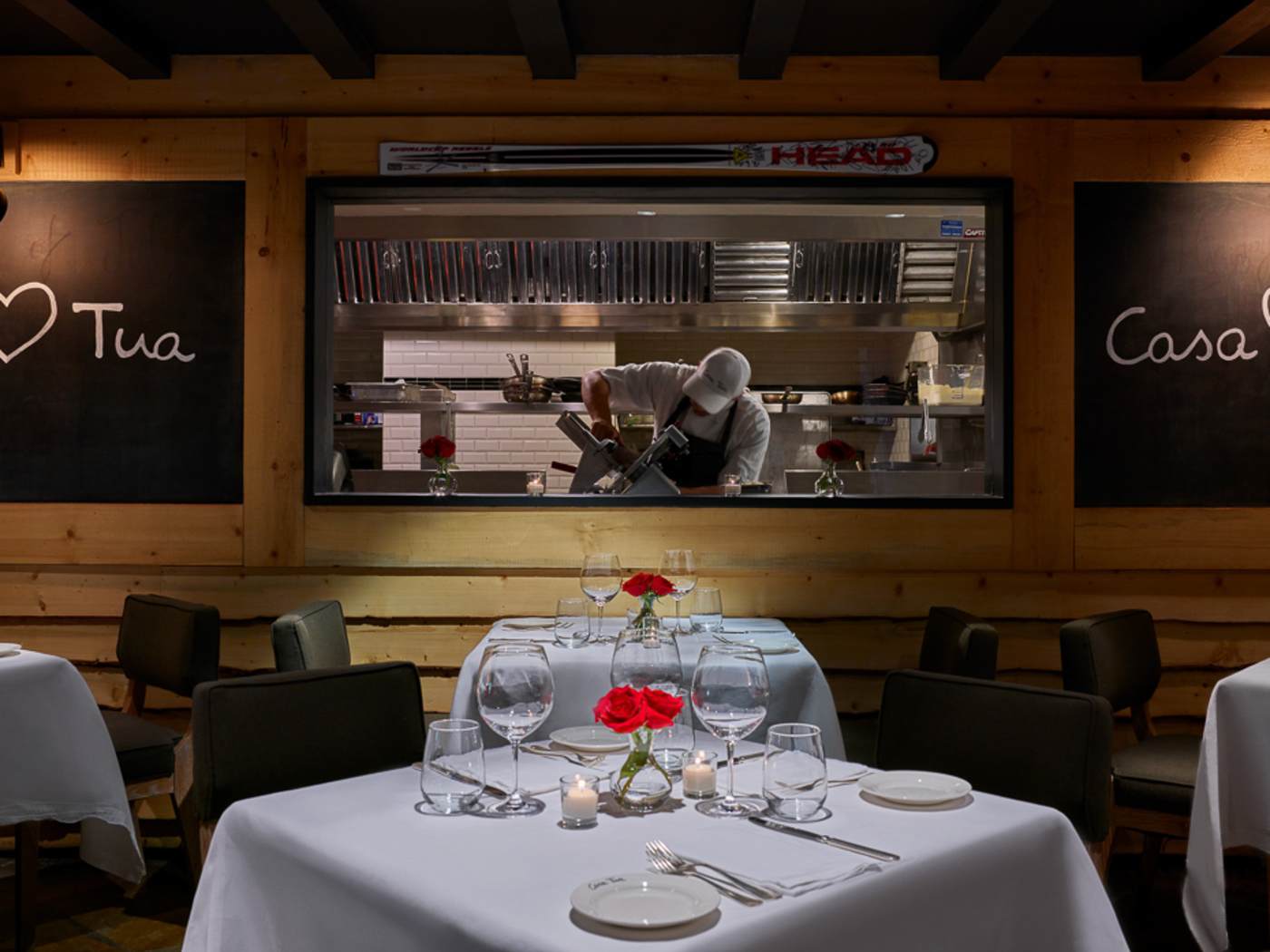"Casa Tua is connected to a private club that has locations in and , but you don’t need to be a member to eat here or hang out at the back outdoor bar. Think of it like Soho House for skiers—just smaller and chicer. At this impeccably designed chalet, you’ll see plenty of people in Moncler cozying up with wooly throw pillows, browsing the coffee table books, and eating piles of antipasti and handmade pastas. And you should join them. Share an entree like the Mediterranean whole branzino or veal milanese, and don’t forget the more-than-worth-it and extremely large $30 pistachio gelato for dessert. " - Katie Shapiro