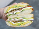 It's a gigantic meal, so unless you can eat a gigantic meal, I suggest that after you get home, immediately cut the sandwich in half then save half of the sandwich in the refrigerator. Don't try to eat it in the car... there is a lot of avocado so you will make a mess unless you are intimately familiar with these sandwiches and just take a bite or two before you start driving. :)