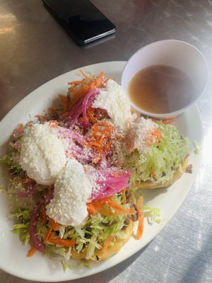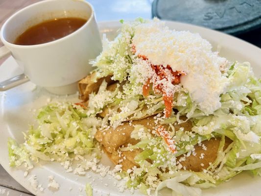 Taco de camaron estilo ensenada: I worried that they would over-batter and fry the shrimp to death or only give me one shrimp and a ton of lettuce. I was surprised by their lightly battered, three huge shrimp in the large hand-made tortilla. Dressing was lightly done over shredded cabbage and diced tomatoes.