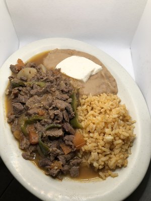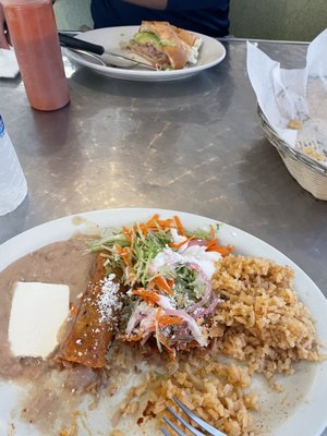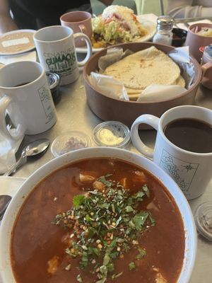 Camarones a la diabla: comes with a side salad, spanish rice, and three hand-made tortillas. Executed well. The sauce on the camarones is a little thick, mild, and with some sweet aftertaste. This is camarones a la diabla in top form.