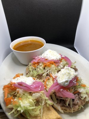 Capirotada: warm, with a good amount of nuts and raisins. Sizable portion that could be shared by two people easily.
