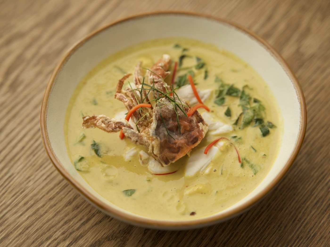 "For my husband’s birthday, we headed here for Thai that felt celebratory: we shared the phuket pak mor ($15), really lovely textured steamed dumplings stuffed with radishes and peanuts. For my main, I got the crab curry ($29) with an absolutely lappable coconut curry and crab two ways — a whole soft shell crab and floating tender crab chunks — spicy in just the right way, with cooling breaks via bites of his pad kee mao seafood ($26), a sort of build-your-noodle-bite platter with sweet-savory flat rice noodles and such plump shrimp. The cocktails were fun too; my After School ($19, paying homage to the Thai city of Surat Thani) was made with butterfly pea vodka and rambutan for a sweetly tart flavor." - Bettina Makalintal