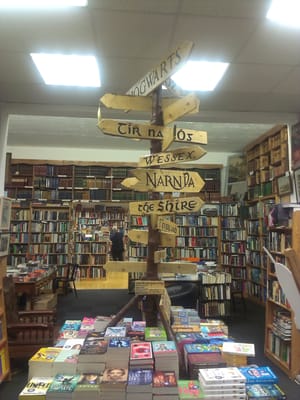For most committed bibliophile, the current trend towards stacking and arranging books like they were any other product is a disturbing one. Books are not apples, or tins of beans, or discount toilet paper; books are living things, full of ideas and concepts, uncontainable and free. In Charlie Byrne's, they understand what a book is. Books prowl the perimeter of the premises; escaped novels snarling at would-be intruders. Inside, ambitious books with lofty ideals climb over and on top of each other, limited only by the physical confines of the ceiling. In Chalie Byrne's, books - not the consumer - are the king. There are no artistic displays by some first-year marketing student here; it's a shop as full of all kinds of books - a mix of 50,000 of them, new, remaindered, cookery, music, geography, Irish language and literature, you name it - as it can physically be, with literally floor to ceiling bookshelves. In short, it's a book shop for people who love books, the kind of people who would think nothing of reading the biography of some unheard-of second-rate nineteenth-century Burmese village bureaucrat if it was a well-written story. Don't get me wrong; Charlie Byrne's stocks all the latest fiction from those hot new Manhattan loft-dwelling authors that the critics love...but if you're only looking for what you know or has been recommended to you by the right critics, then you may as well just go to one of the big chains with their book arrangements, who'll have that loft book right in front of you - if you're not willing or able to track, hunt and trap your own book, or be unexpectedly stalked and pounced on by a random book yourself, then Charlie Byrne's is not for you.
