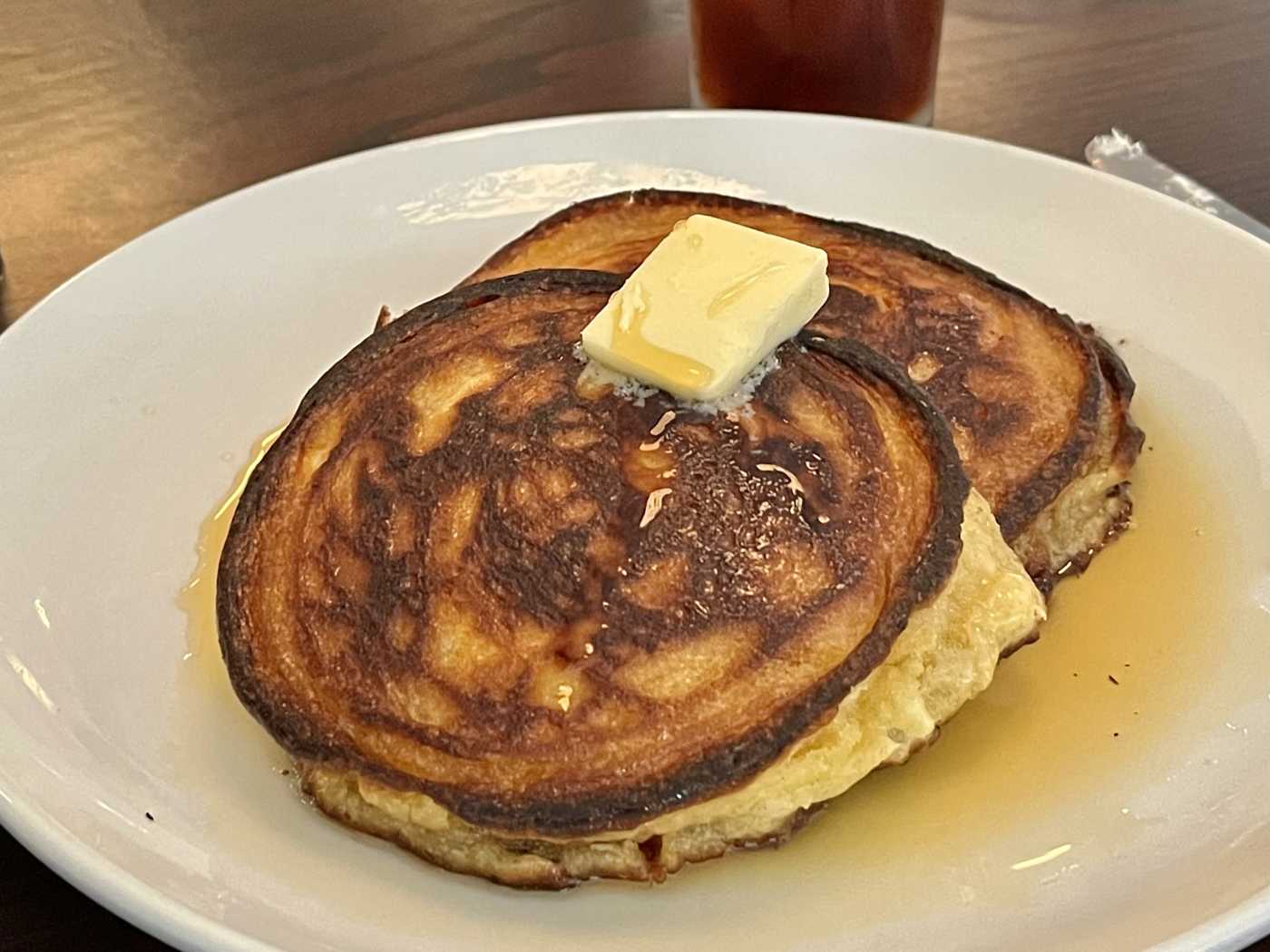 Pancakes, Caesar salad, pork shoulder, wine list