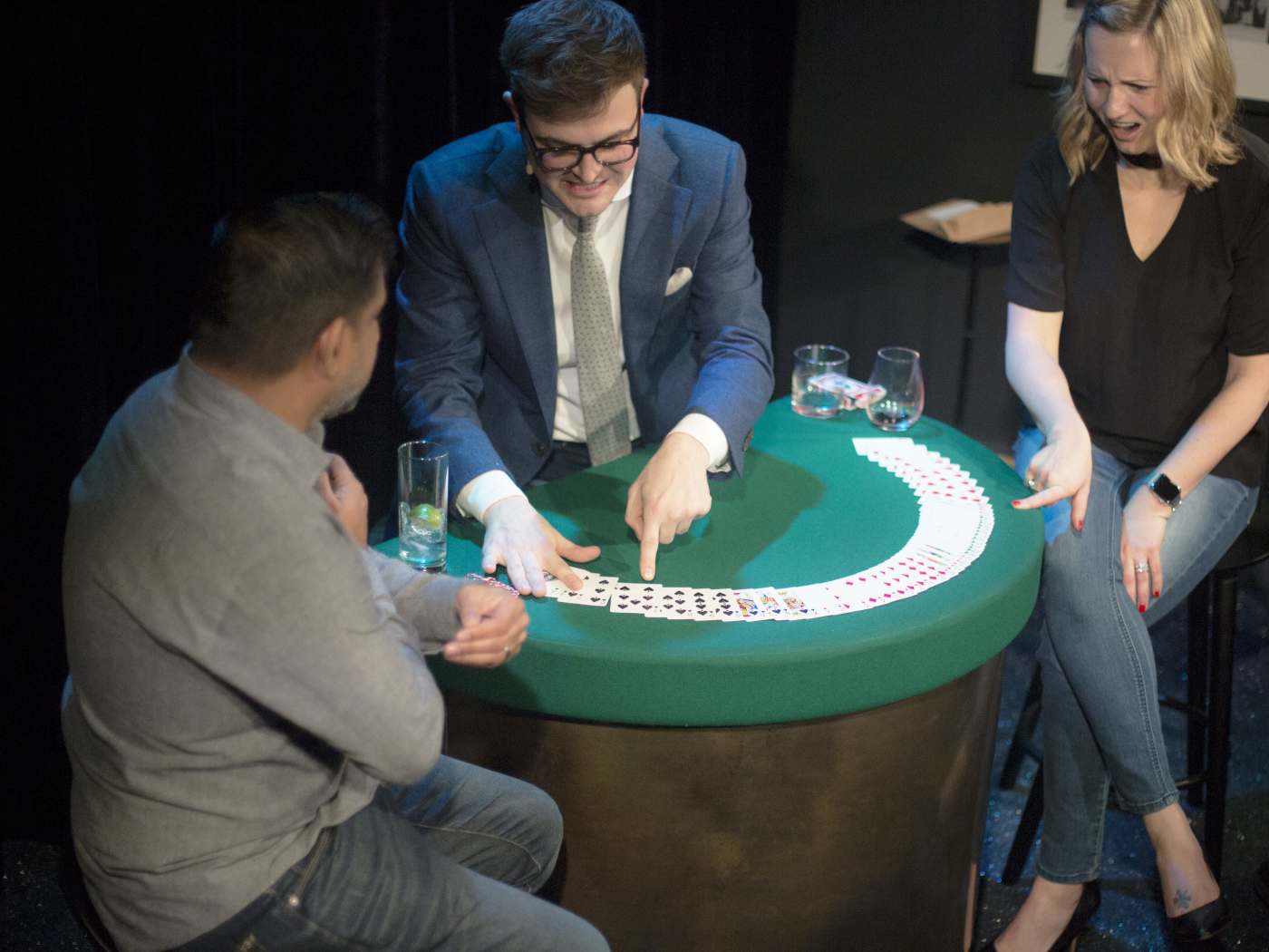 "Dating often involves a lot of illusion, so Chicago Magic Lounge’s appearance in this guide is fitting. It’s a speakeasy-style theater dedicated to the lost art of Chicago-style (meaning close-up) magic. So once you find your way into this Andersonville theater—hidden behind a fake laundromat—you’ll have magicians coming up to your table to entertain you with sleight-of-hand. The drink menu has above-average cocktails, and there are snacks like beef tenderloin sliders or fig and pancetta flatbread. The food isn’t going to blow your mind, but the stage magic during the second half of the show might." - adrian kane