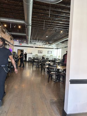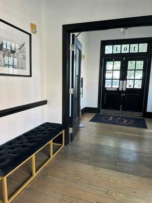 There's a very small foyer at the entry point. Short of making yourself part of the wall decor, asking a party of 5, with a reservation, to wait when there are plenty of empty tables in the dining room shows very poor situational awareness. Did I also mention that it was pouring rain at the time? We just wanted to sit, take off our wet coats, and warm up, away from the cold entry area.