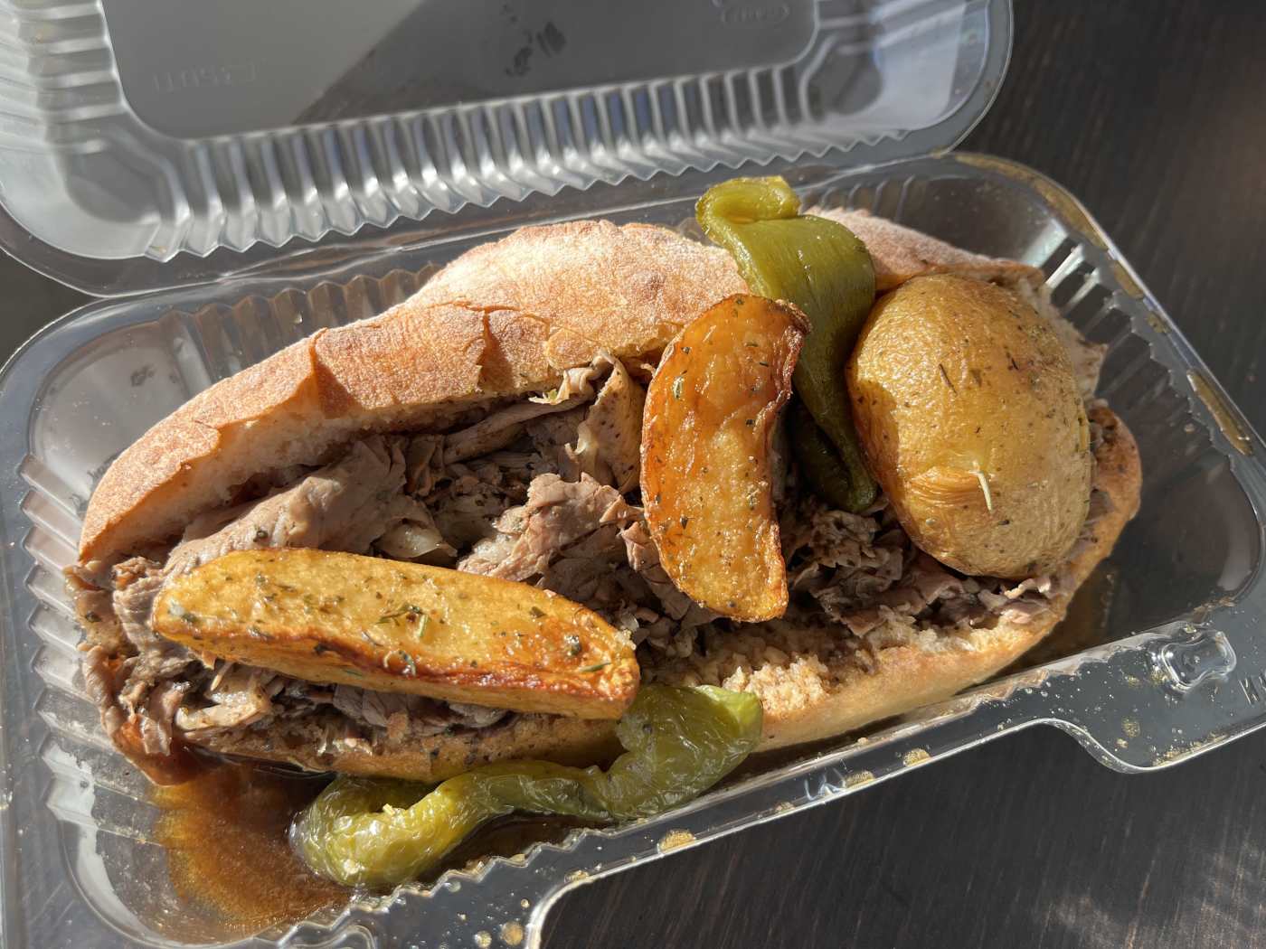 "Hiding in the most unlikely of places (in the food court at Navy Pier, stay with us) is Ciccio, a very good stall with an Italian beef unlike any other. The beef is great, the peppers are solid, but there are no dipped or wet options here. There’s only dry, or “in a bath” with slices of garlic taking a soak and a handful of tasty potatoes adding "vibes" like a funemployed friend. Ciccio’s sandwich comes on sturdy bread approximating a mini baguette, and is semi-submerged in a plastic sandwich container. If you can manage to eat this without a fork and knife, we salute you." - Veda Kilaru