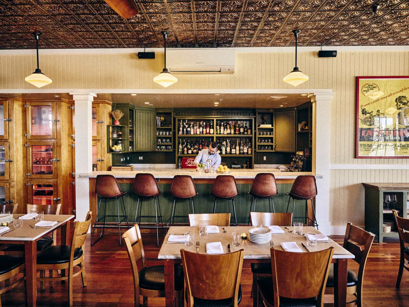 "A pleasant contrast to the sleek new spots around town, this dining room's country-style curtains and front porch are a ticket to another era—and a hot ticket at that, since tables are hard to come by. Indeed, this Yountville gem could pass off as a John Wayne film set, with its wood-framed, 1916-era grocery look. Blistered, puffy crusts boast a tangy flavor of fermentation and a hint of smoke from the fire, an excellent vehicle for hearty toppings like crispy cabbage leaves paired with thinly sliced pancetta and melty gouda. House-made pasta, like chitarra with 'nduja sausage, clams and pea tendrils, are nearly as enticing, and shareable mains, like a hefty pork chop Milanese, should not be overlooked." - Michelin Inspector