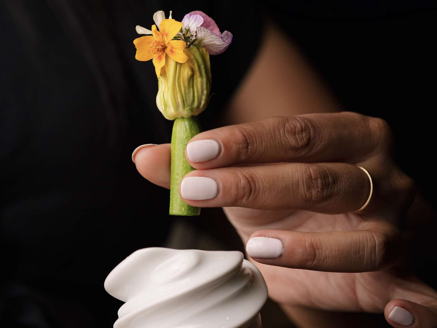 The "oil cooking" dish was also too spicy for me to eat, even with the lovely whipped cream concoction. Similarly, the final savory dish was basically a barbacoa-mushroom uncrustable. I was excited about this one, but ultimately the filling was too spicy for me.