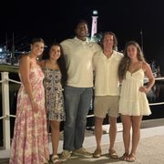 Tropical waterfront spot with seafood, tacos, pasta, live music