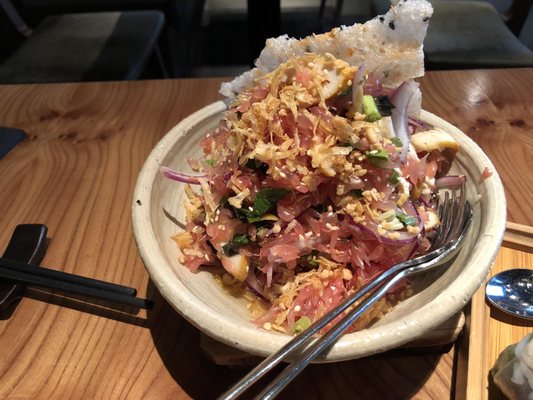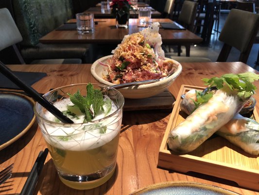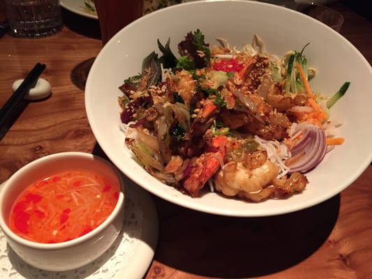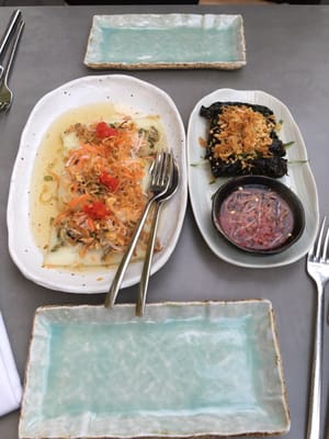 My husband ordered a main off the menu of the day, which included grilled pork chops served with rice, sunny side up egg and salad. I opted for the traditional rice noodles served with crispy duck. What a cullinary experiences. Such fresh salads and vegetables. The meats were finely marinated, flavours of lemon grass, fermented beans and spices blend beautifully together. The portions were generous and presentation was appetizing. They could have brought out both our meals at the same time, the rice noodles came about 10 minutues after the pork chops, considering it was a small table with only these 2 food orders. However, the quality of the food and the overall dining experience certainly made up for it.