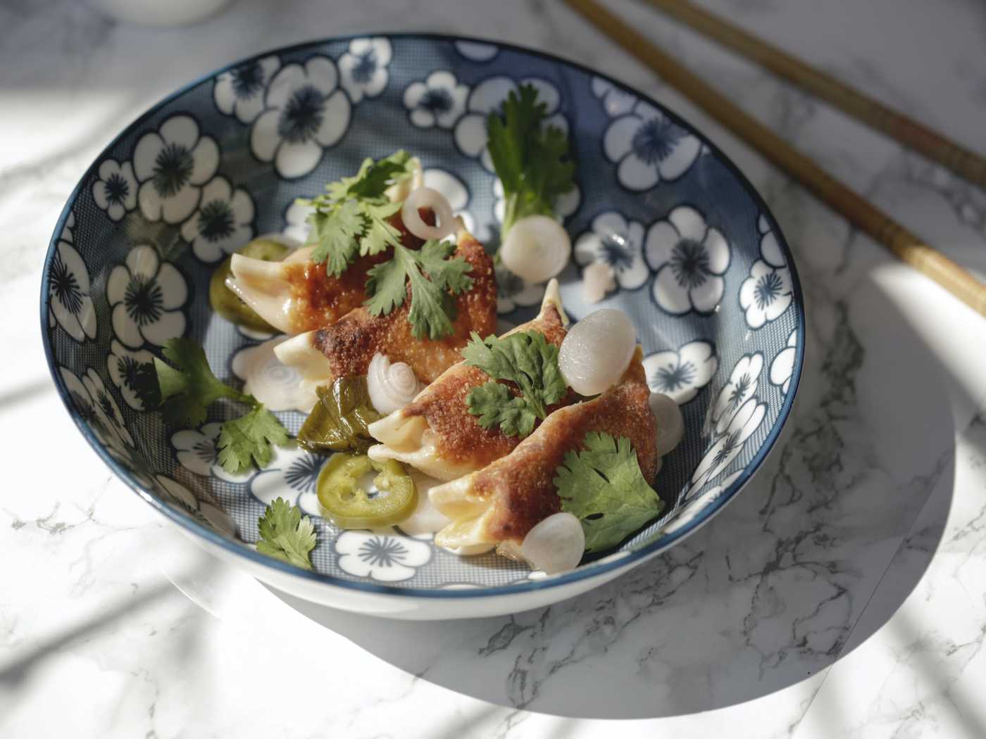 Asian-influenced pub food with dumplings, noodles, and burgers