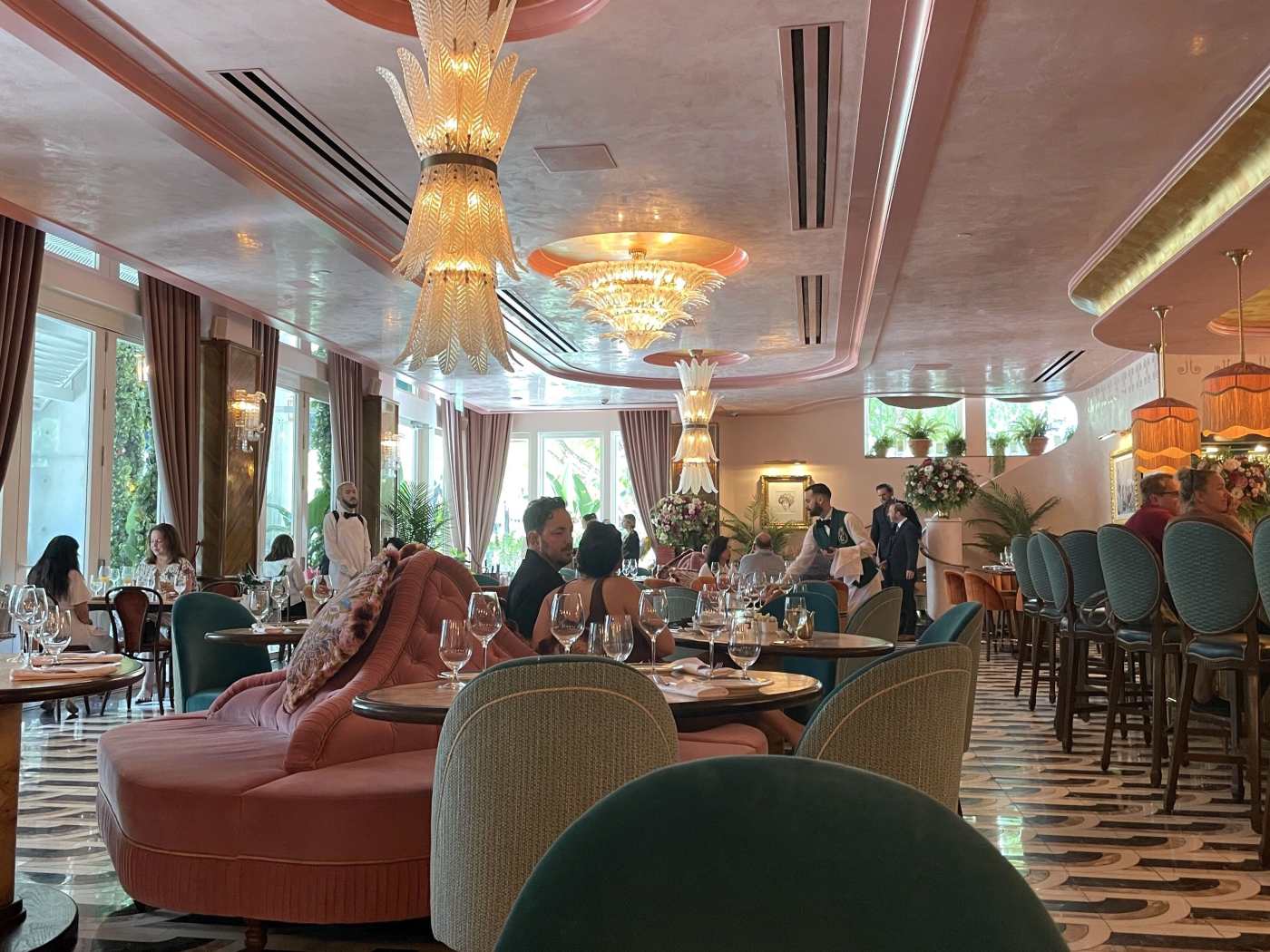 "A Major Food Group outpost in Miami that exemplifies a pandemic‑era seating strategy: banquettes and booths flood the floor rather than hugging walls, creating plentiful, comfortable semi-private nooks that encourage people-watching and make dining out feel like the main event of an evening." - Laura Neilson