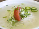 "Corner Place makes dong chi mi gook su, a cold, clear noodle soup with a secret-recipe broth. When it’s 100 degrees outside and every food you can think of seems too heavy or rich, this marvelous bowl of chilly comfort with slivered scallions and cucumbers is what you’re looking for." - eric lane