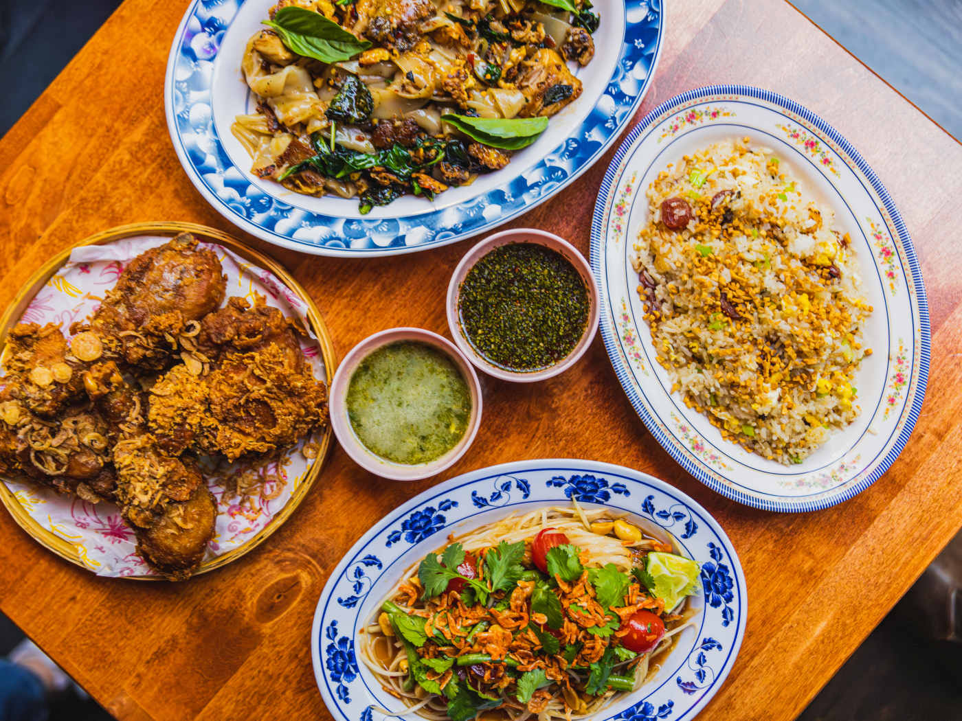 "Walking around downtown Portland, you’ll likely notice two things: lots of lobster paraphernalia and the incredible smell of fried chicken coming from Crispy Gai. They have lots of options: a mouth-numbing sichuan variety, a red curry version that feels like a riff on the classic buffalo sauce, and our favorite, the Hat Yai topped with a mountain of fried shallots on top. There are also five different sauces for dipping, and it’s worth getting the whole flight to try them all, from sweet and tart offerings to hot and funky fish sauce flavors." - carlo mantuano, david neimanis, team infatuation