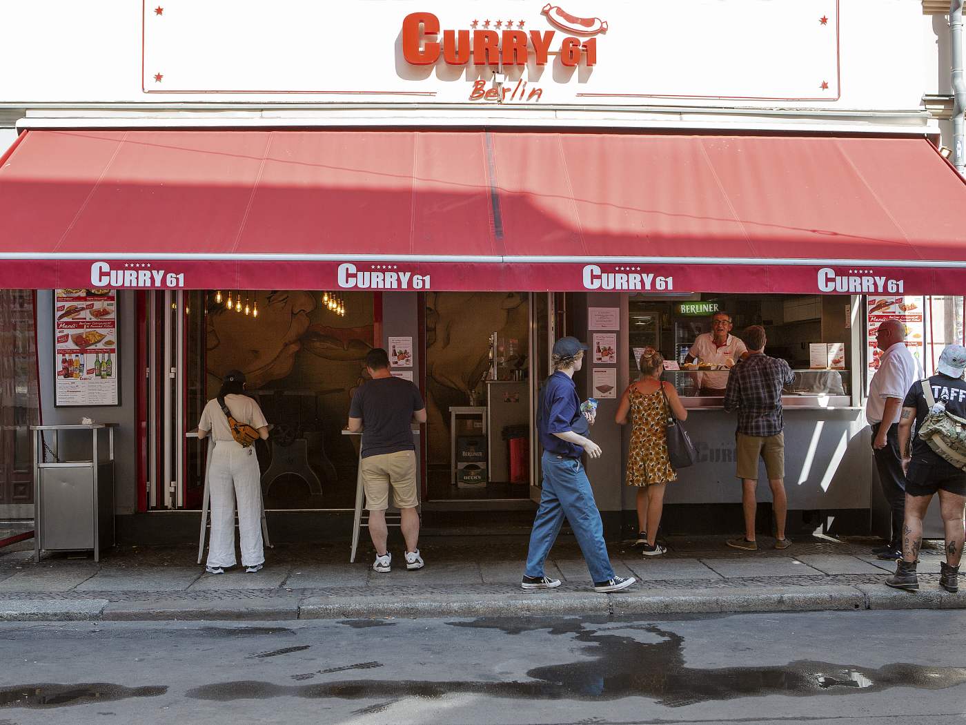 Locally sourced sausages, curry sauce & fries in an industrial venue