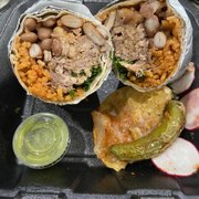 There was only one couple in line before me, so I was served pretty quickly. A friendly woman took my order while the owner appeared to prepare the food. I ordered a bowl with butter chicken, rice, vegetables, and garlic naan. I also added the mini veggies and a drink on the side. Two of the three indoor tables were taken so I sat at the third one. I enjoyed my meal while they played light rock music in the background. Their AC and an oscillating fan kept me cool during the high temperatures of a Bakersfield heat wave.