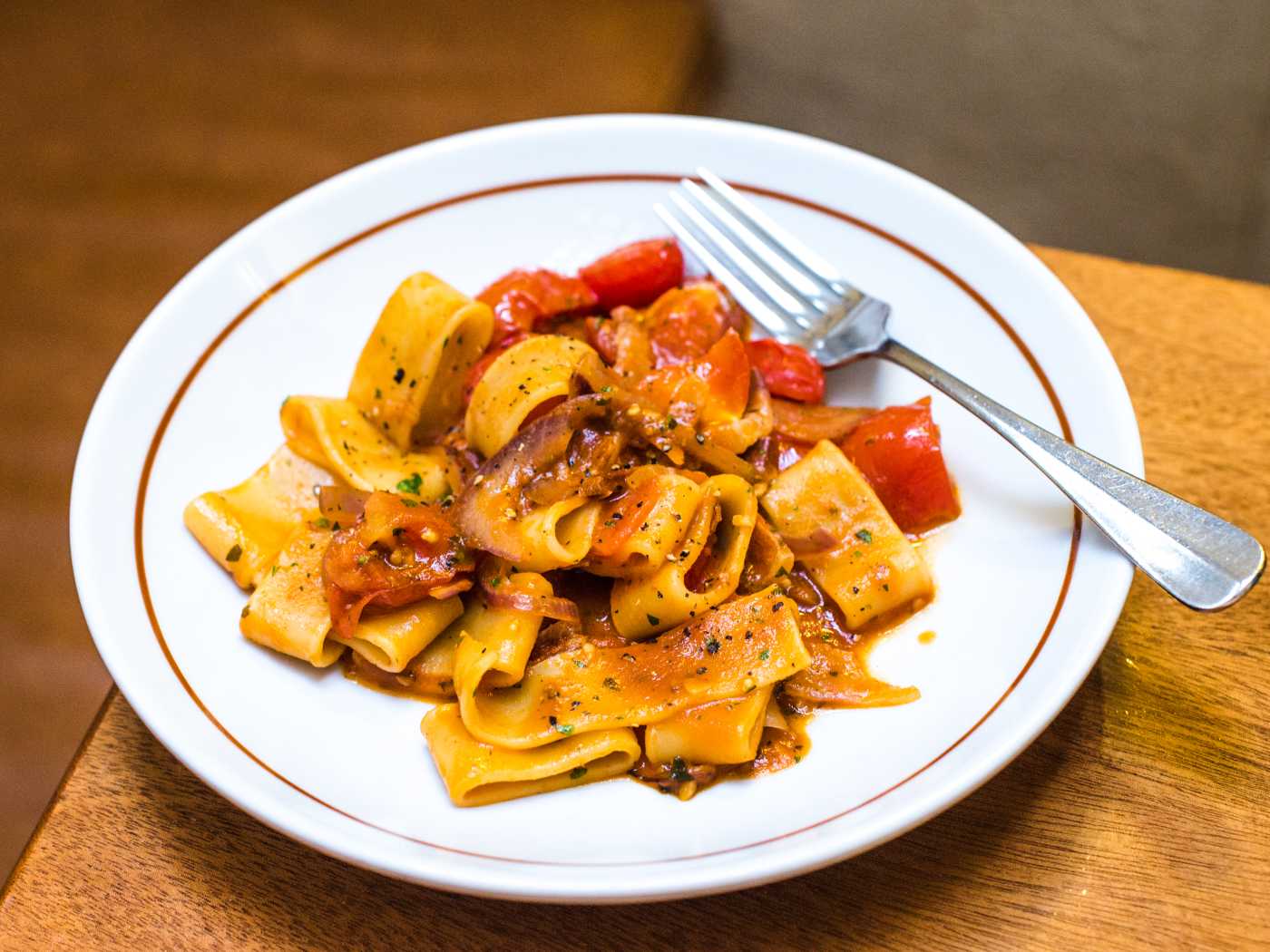 I ordered a glass of the house wine (not my favorite, but also inexpensive) and the day's special: a spaghetti with assorted seafood. The food came quickly despite the packed house and my good it immediately made dragging myself out after a long workday worth it. The spaghetti was PERFECTLY el dente, and the seafood was both well cooked and plentiful (I find that usually the ratio of pasta to seafood in these types of dishes is lacking, but that was definitely not the case here). It was so good that I ate the whole dish, and had to take my desert cheesecake to go (which was also good, especially the raspberry drizzle on top). Also appreciated that unlike the other restaurants nearby that I've dinned at, asking for water doesn't automatically accrue a £4 bottle charge.
