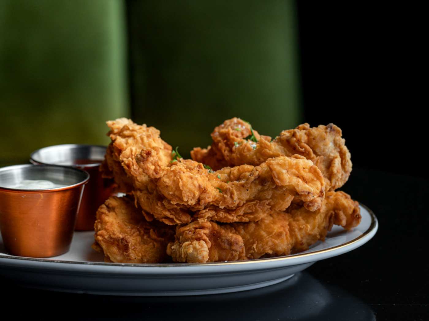 "Channeling serious Great Gatsby vibes, this decadent restaurant covers the spectrum of American cuisine with appetizers like chicken tenders, a classic burger, and a 32-ounce tomahawk steak. The self-described “modern-day supper club” is rife with rich textures and design details that enhance its swanky atmosphere. Cocktails like The Strip and Tease—made with reposado tequila, guava, and spiced pear—are perfect for kicking off dinner." - Alona Martinez