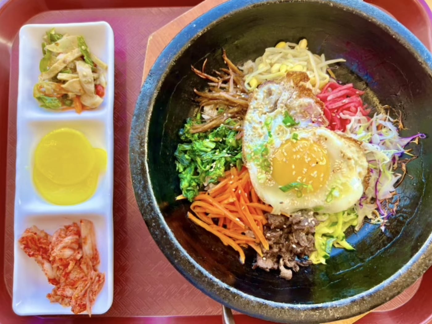 When you feel hungry, they specialize in great Korean dishes, I ordered the Galbi and Bi-bim-bap and a small drink. You can stay as long as you want and parking is free and available.