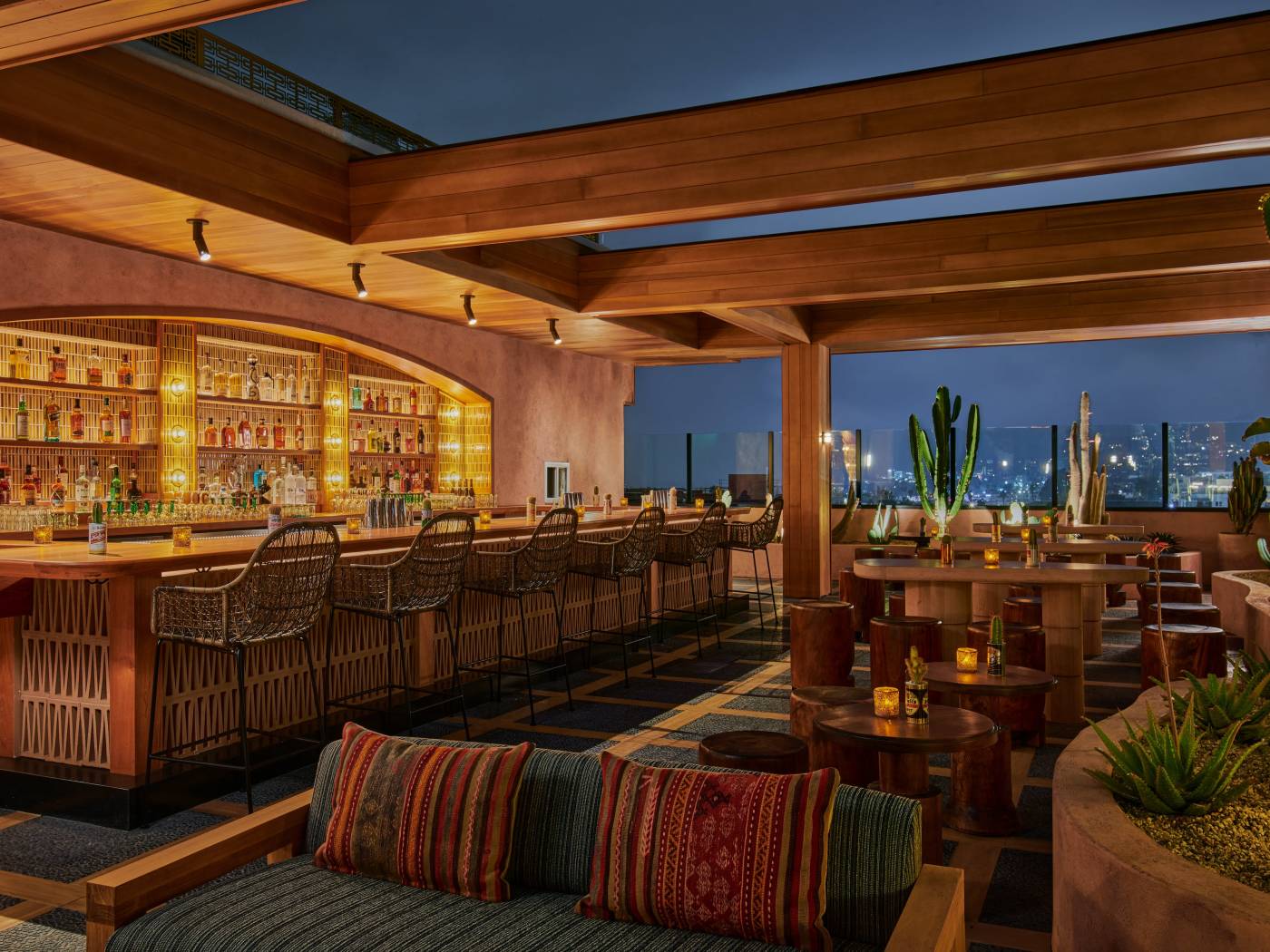 "Self-described as "a little bit country, a little bit rock-and-roll," Desert 5 is a Pioneertown-inspired rooftop bar in Hollywood that is committed to the bit. There are glowing neon signs, cocktail glasses shaped like cacti and boots, and a stage where some band you've never heard of plays their heart and soul out while rocking cowboy hats. It gets crowded here on weeknights, so probably come then. Weekends are packed, packed, packed." - brant cox, sylvio martins