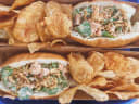Carolina dog: 1 foot long all-beef hot dog with pulled pork and slaw on top. We split this between three (small) adults. It was perfect. There was so much meat (to us). Must have a drink on hand as the sauce is strong and a bit salty. We passed on the chips- too salty. Condiments come in packets, but we didn't end up using them because the whole dang thing was already so tasty.