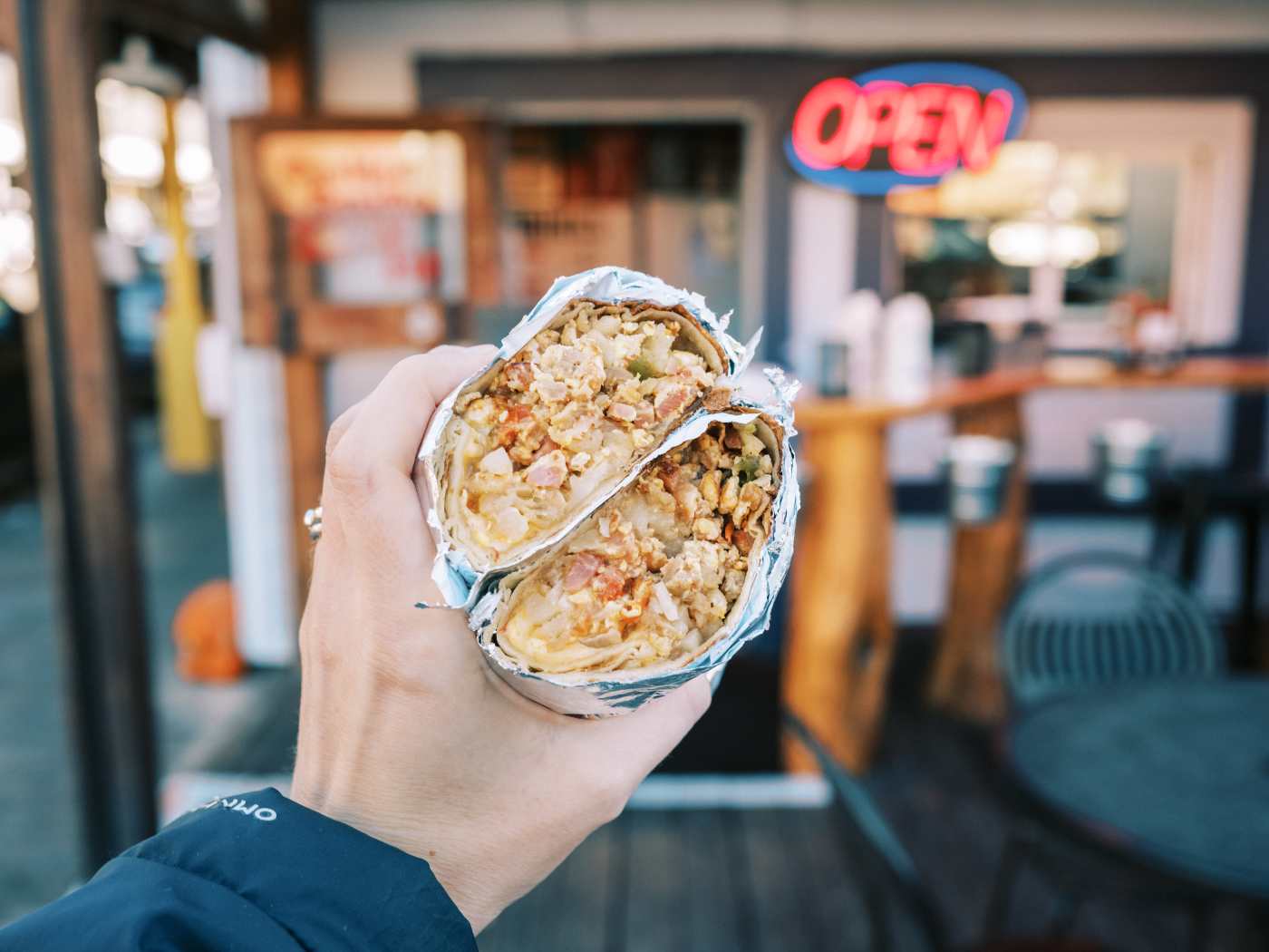 Meaty breakfast burrito- SO GOOD; filling, steamyyyy, and perfect balance of all ingredients. Get the sauce, it makes the perfect more perfecter. They have them on hand all day- when I need a GOOD quick good fix near the square, it’s this.