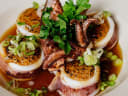 "Much like caviar or gold leaves, uni sometimes shows up on menus for the sole purpose of making a dish feel like it comes with the keys to a Maserati. In the case of Dr. Clark’s squid, the saline taste of uni isn’t for show. It adds depth and richness to the charred rice and chewy squid, like the three ingredients were destined to be together." - team infatuation